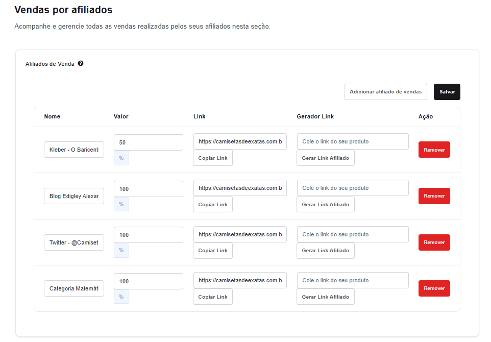 O lucro das vendas realizadas pelos afiliados é recebido pelo lojista, que fica responsável por repassar o valor da comissão aos afiliados. É importante manter um controle detalhado das vendas e comissões para garantir que os afiliados recebam corretamente pelos resultados gerados.