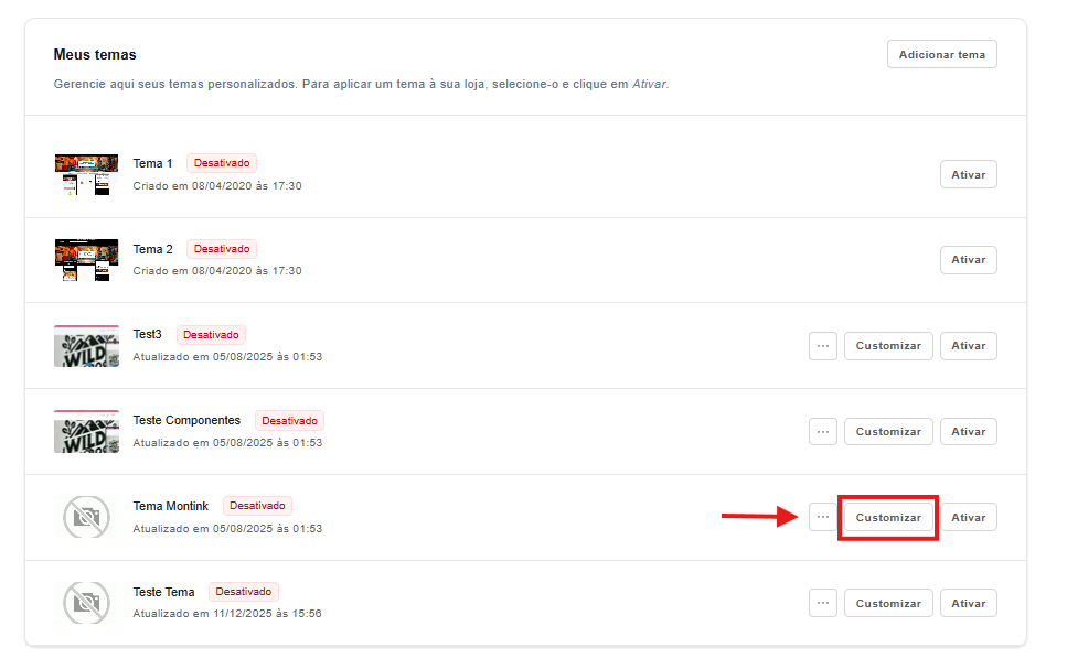 Na seção dos temas, escolha o que deseja Customizar