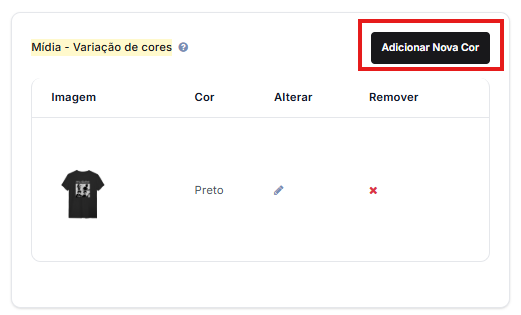 Procure a seção Mídia - Variação de cores e clique no botão Adicionar Nova Cor