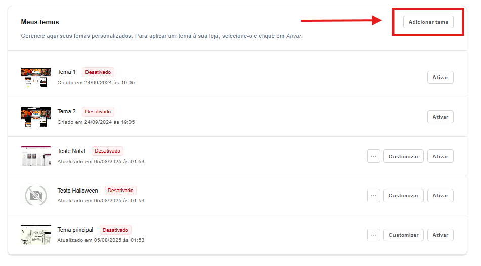 - Clique em Novo Tema.