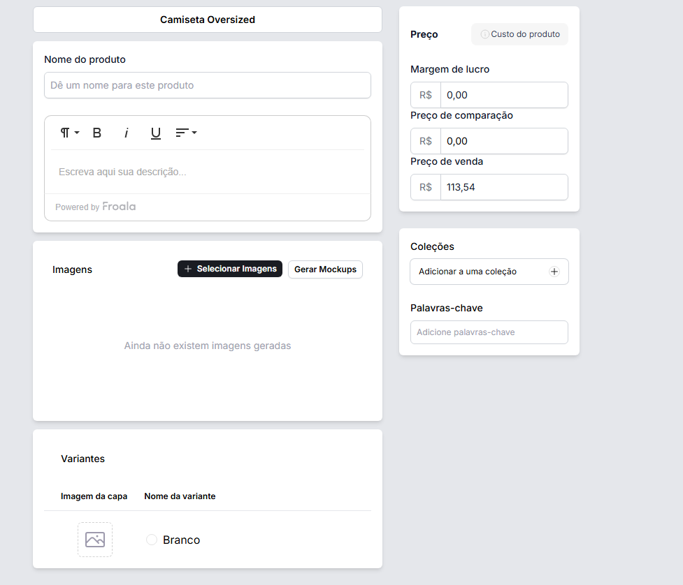 Depois de configurar tudo e gerar os mockups, clique em “Publicar Produto”, no canto superior direito da tela.
