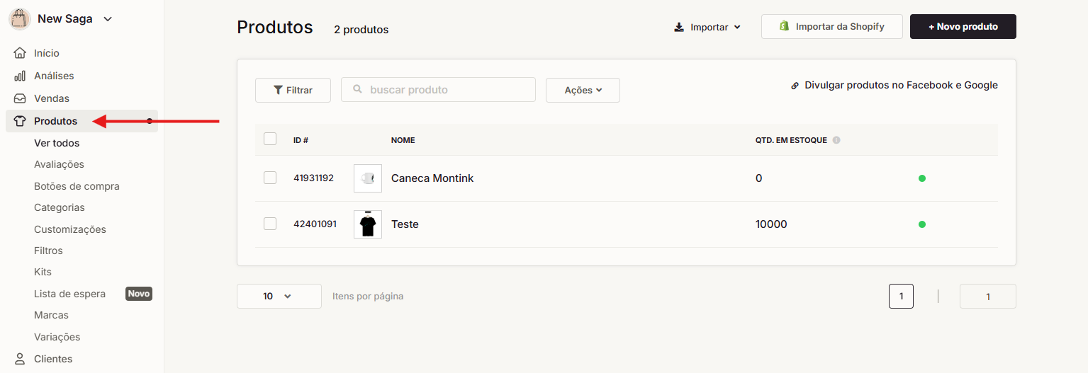Para conferir, basta acessar a aba Produtos na Yampi.