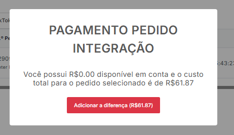 Importante: Caso você não possua saldo na plataforma para concluir o pagamento, um novo pop-up ira surgir, solicitando que adicione o valor para pagamento