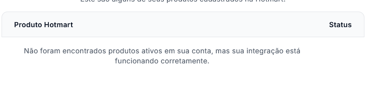 Se a validação for concluída com sucesso, todos os seus produtos cadastrados na Hotmart (digitais ou físicos) aparecerão na Montink. Caso não possuir produtos, será exibida a seguinte mensagem.