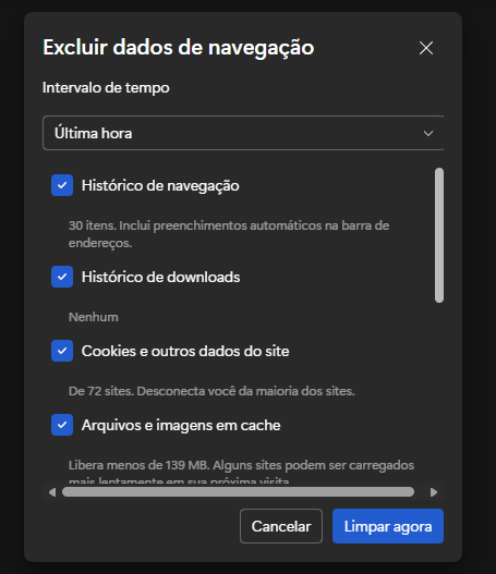 Limpar o cache do navegador ajuda a resolver problemas como: