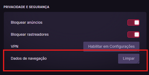 Em “Limpar dados de navegação”, clique em Escolher o que limpar