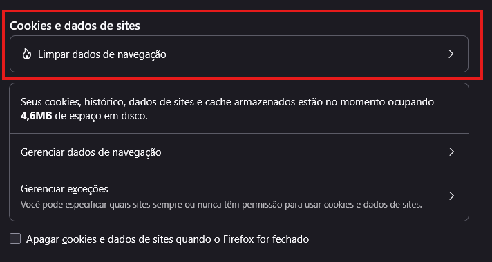 Em “Cookies e dados de sites”, clique em Limpar dados