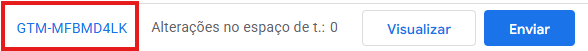 GTM-XXXXXXX) é exibido no canto superior direito da telaCopie esse código