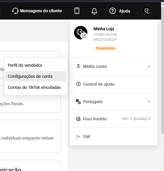 Entre na sua conta do TikTok Shop