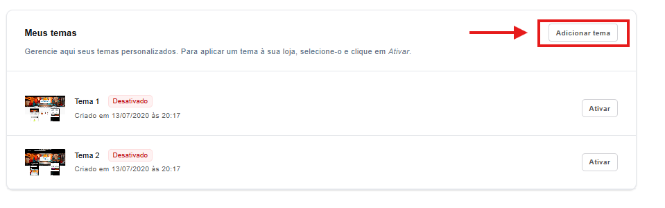 Minha Loja → Temas