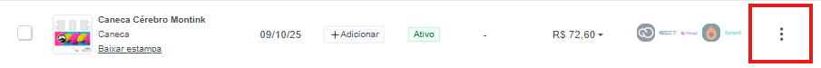 2. Na coluna Ações, clique nos 3 pontos e acesse a opção Editar produto: