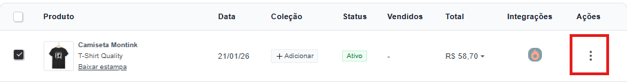 3️⃣ Localize o produto desejado e clique nos três pontos ao lado dele.