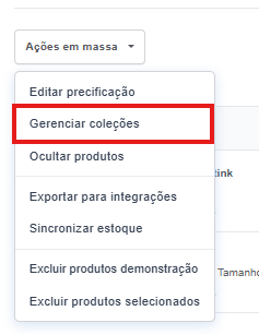 4️⃣ Clique em Ações em Massa e escolha a opção Gerenciar Coleções.