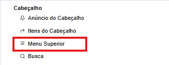 1️⃣ Na seção Cabeçalho, clique em Menu Superior.
