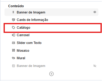 1️⃣ Na seção Conteúdo, clique em Catálogo.